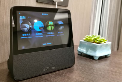 小度音響其場景呈現(xiàn)使用的是佳智星智能客控主機(jī),著重打造客房區(qū)域內(nèi)的明亮,柔和、影院、睡眠、起床模式。使傳統(tǒng)風(fēng)格的酒店也能給客人帶來新鮮的體驗(yàn)和感受。 ● 明亮模式 ●